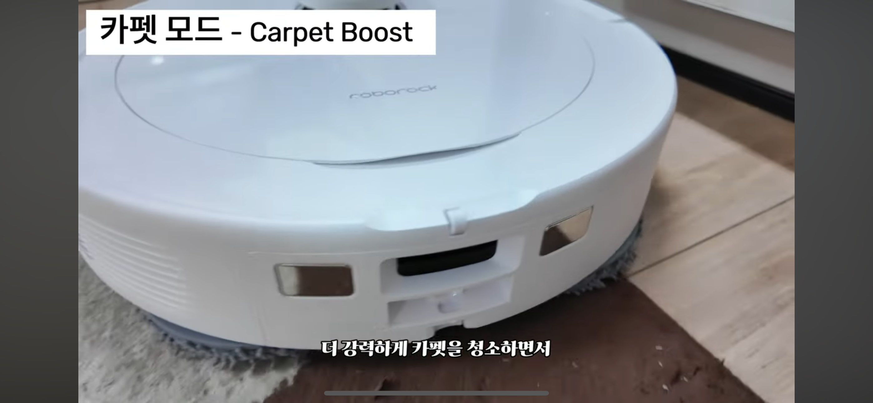 또 카펫을 지나갈 때는 자동으로 물걸레를 들어 올려 카펫이 젖지 않도록 했습니다. 또한, 스테이션에서 물걸레를 자동으로 세척하고 건조해줘서 매우 편리했어요.