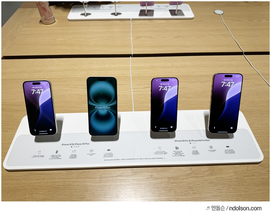 잠실점에서 아이폰 16 시리즈의 다양한 색상과 기능을 직접 체험해 볼 수 있었습니다. 이번에 새롭게 출시된 아이폰 16 시리즈는 디자인과 색상, 그리고 카메라 기능에서 많은 변화가 있었습니다. 잠실 애플스토어에서 직접 실물 아이폰16 시리즈를 모두 확인해 본 결과, 특히 색상 선택의 폭이 넓어지고 카메라 성능이 더욱 향상된 점이 인상적이었어요.