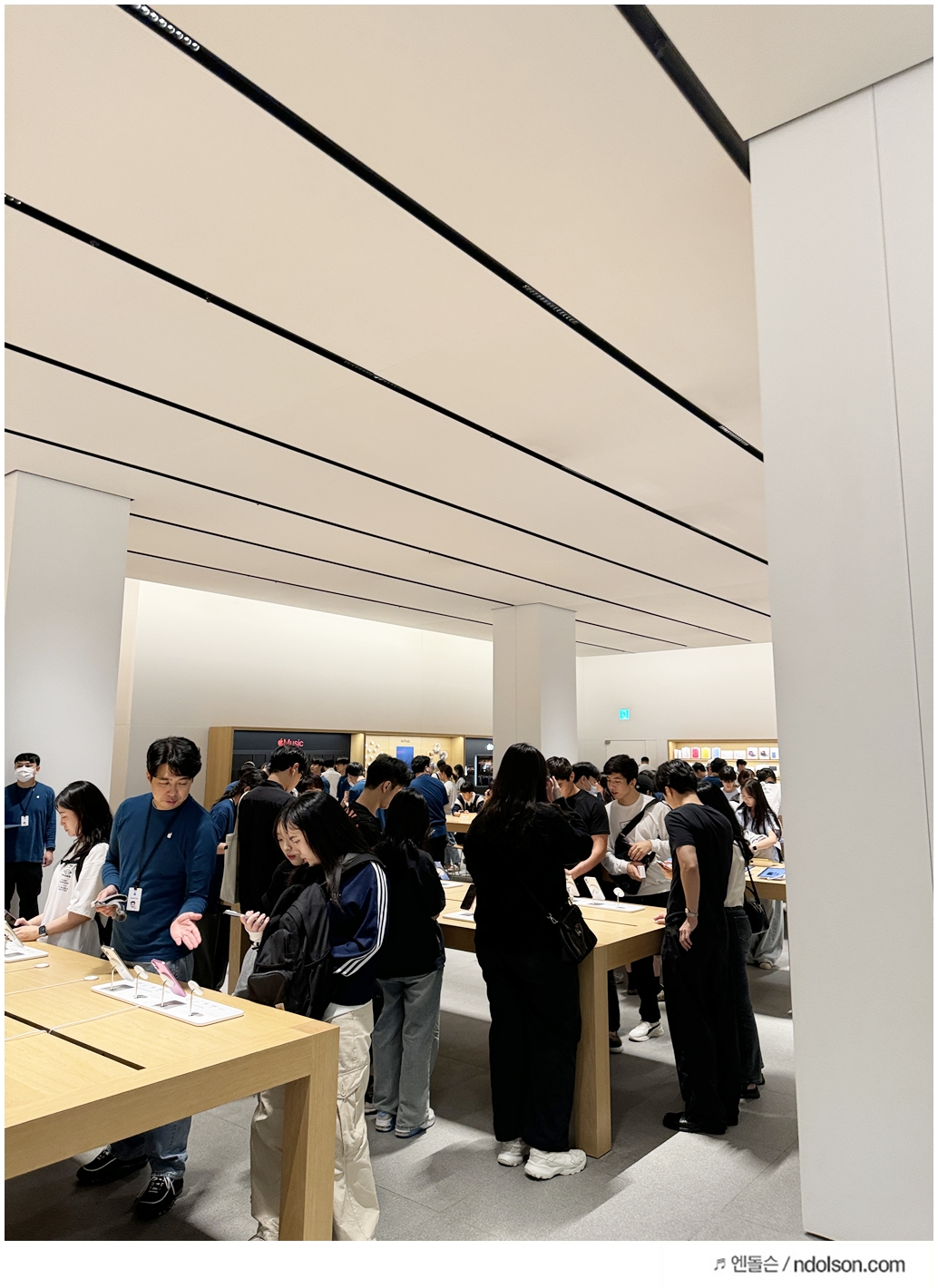 잠실 애플스토어는 독특한 개방형 인테리어로, 넓은 공간에 큰 유리창을 통해 자연광이 잘 들어와 밝고 쾌적한 분위기를 자아내요. 특히, 픽업 카운터가 따로 있어 주문한 제품을 빠르고 편리하게 수령할 수 있었습니다.