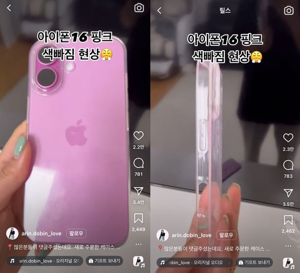 아이폰16 시리즈에서 색빠짐 현상이 발생해 논란이 되고 있습니다. 최근 SNS를 중심으로 아이폰16 핑크 제품을 사용 중인 일부 소비자들이 투명 케이스가 핑크빛으로 변색됐다는 글을 올리며 불만을 제기되고 있다고 합니다.
