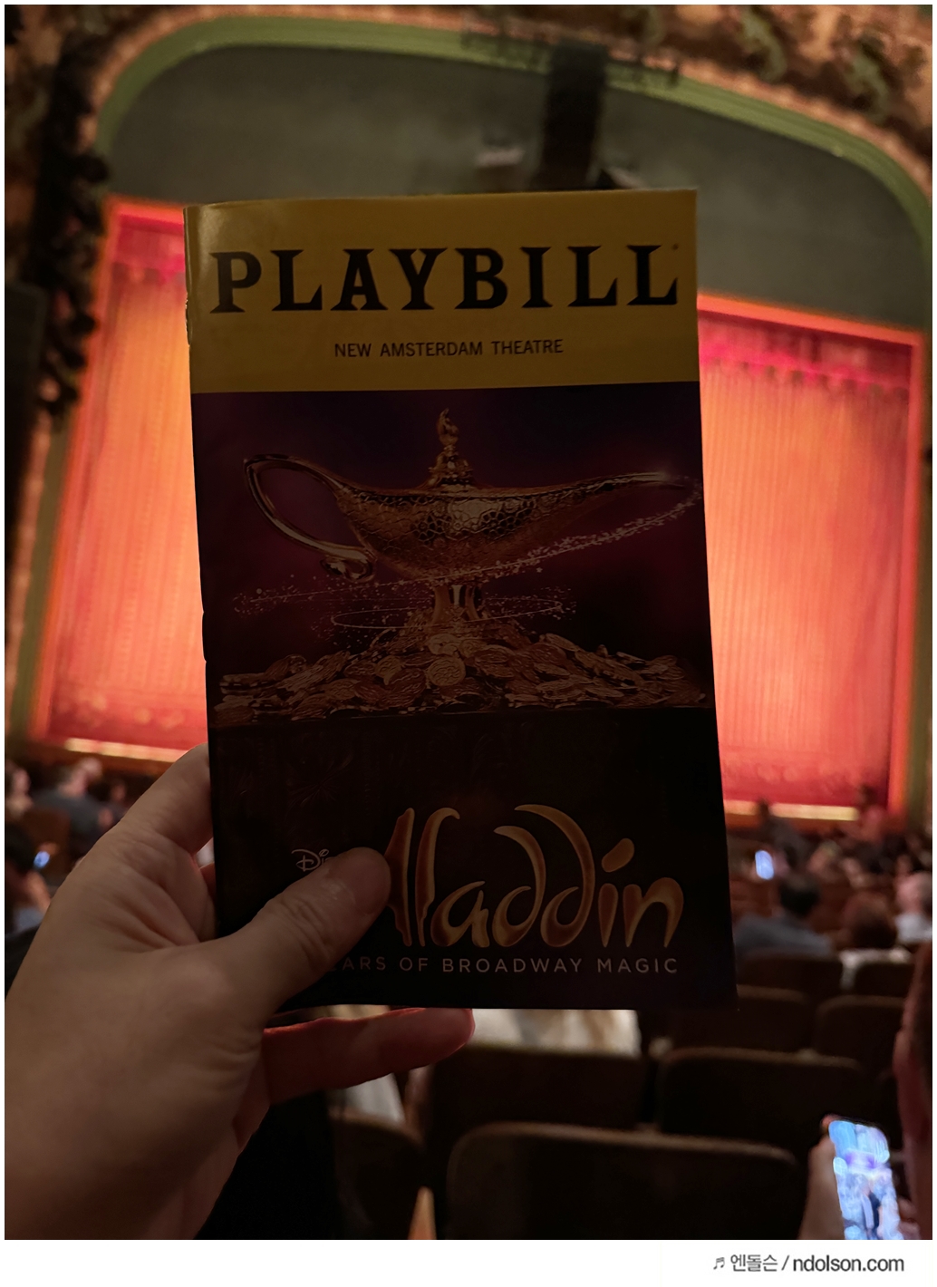 올해 여름 뉴욕의 뉴암스테르담 극장에서 브로드웨이 알라딘(Aladdin) 뮤지컬을 관람했습니다. 어릴 적 애니메이션으로 보았던 이야기가 어떻게 무대에서 재현될지 궁금했습니다. 그래서 알라딘 애니메이션을 다 보고 뮤지컬로 보기로 했는데요. 딸아이와 함께 보려고 뉴욕 알라딘 극장을 찾습니다.