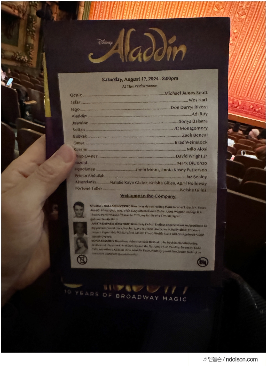 뉴욕 알라딘 뮤지컬 관람 후기