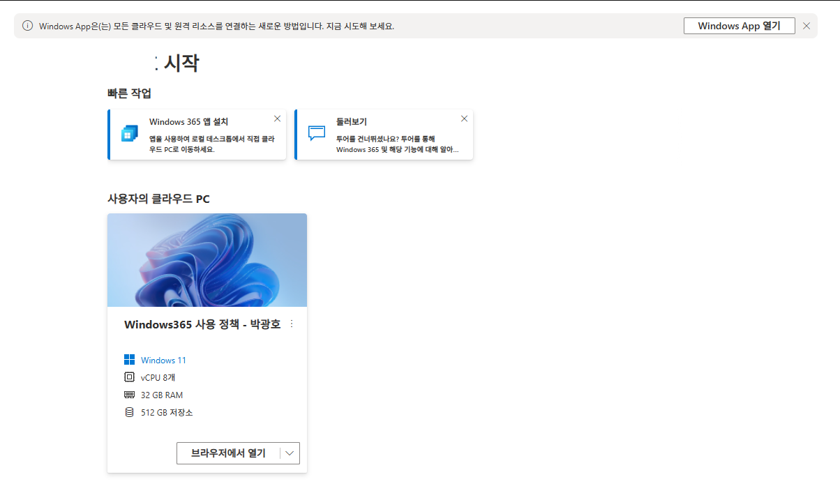 앱 더 보기를 눌러보니, 윈도우 365 라이선스가 할당되어 찾을 수 있었습니다.