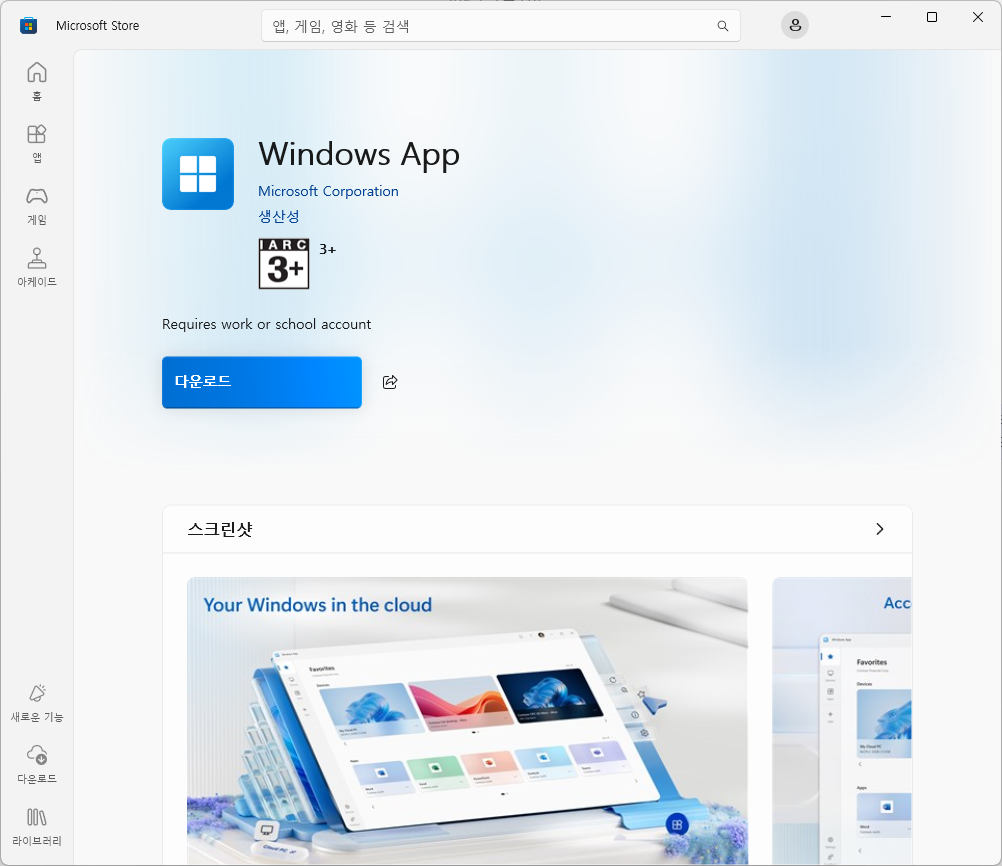 Windows App을 별도로 설치해야 합니다.