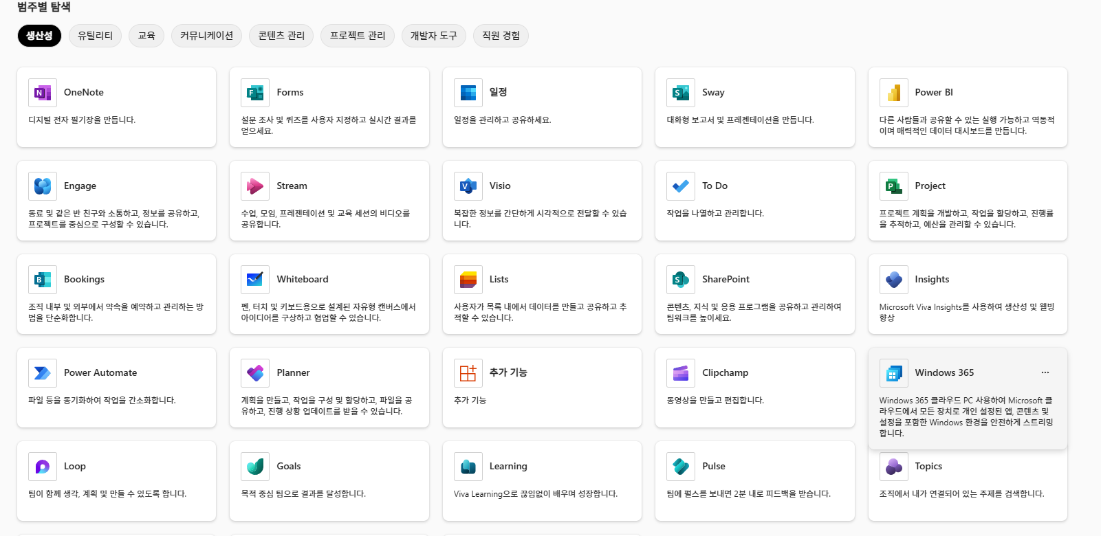 앱 더 보기를 눌러보니, 윈도우 365 라이선스가 할당되어 찾을 수 있었습니다.