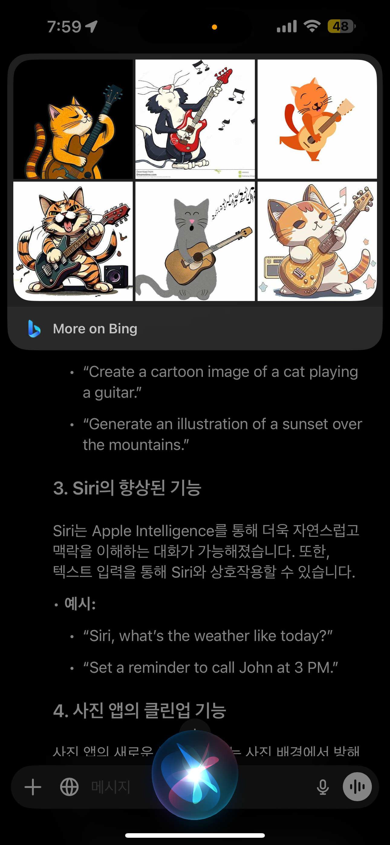 생성형 이미지를 만들 수 있다고 합니다. 이게 검색인지 생성인지는 모르겠지만, 기타치는 고양이 이미지를 생성해주었습니다.