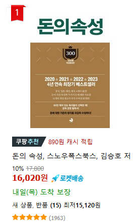 현재 별점 4.8점, 리뷰 1963개를 가진 돈의 속성! 지금 쿠팡에서 더 저렴하고 다양한 재테크일반 제품들을 확인해보세요.