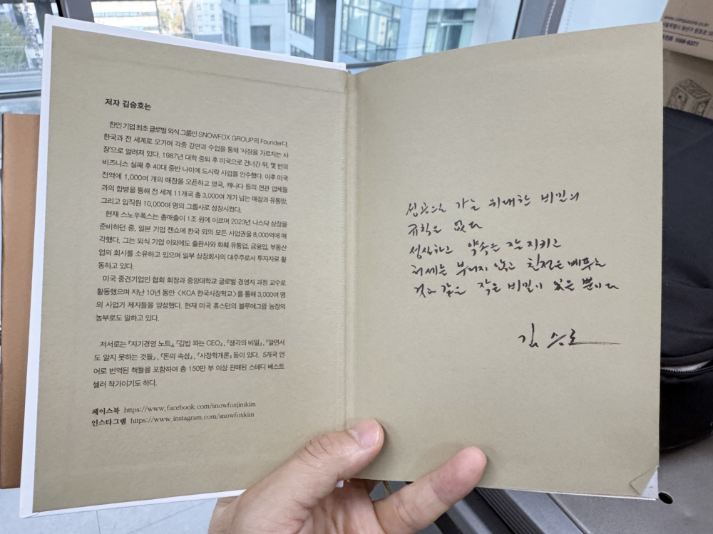 얼마 전 출퇴근하면서 김승호 회장님의 '돈의 속성' 개정판을 완독했습니다. 이전에 초판도 읽었지만, 이번에는 미국에서 온 처남이 선물로 준 개정판을 새로운 시각을 다시금 얻게 되었습니다..