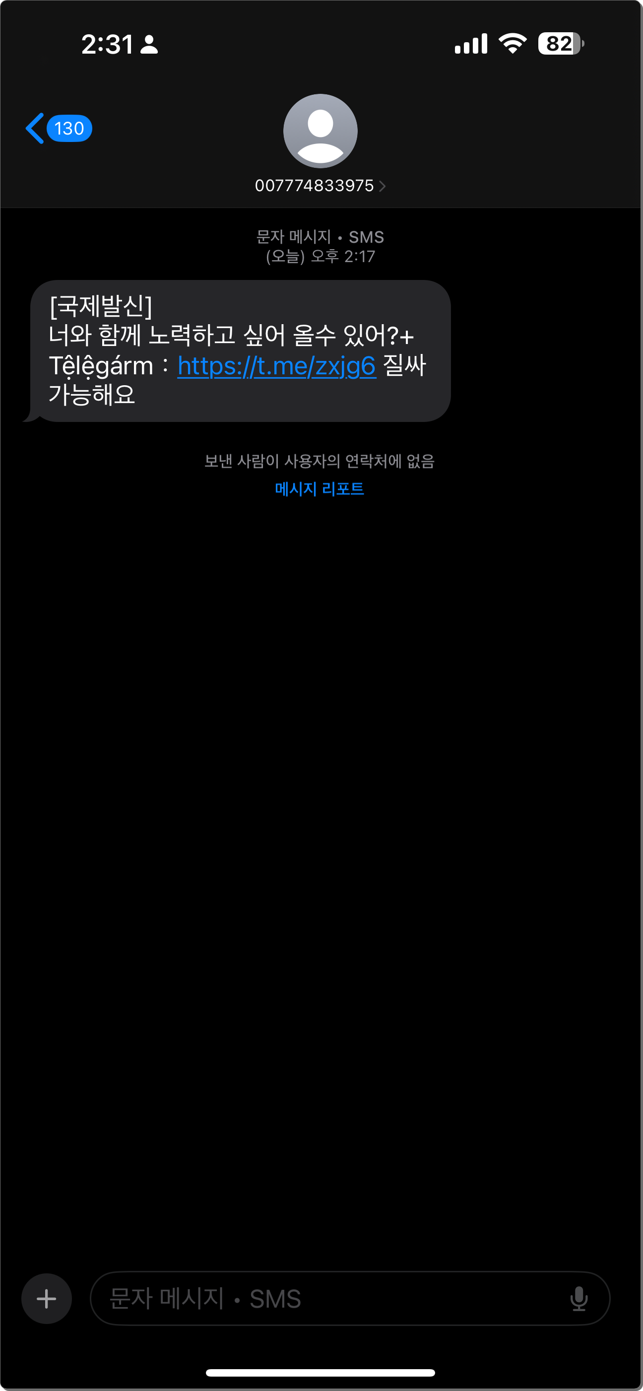 하지만 문자가 "국제문자"이고 패턴이 일정하지 않을때는 후후 앱의 키워드 메시지 차단을 써보자!