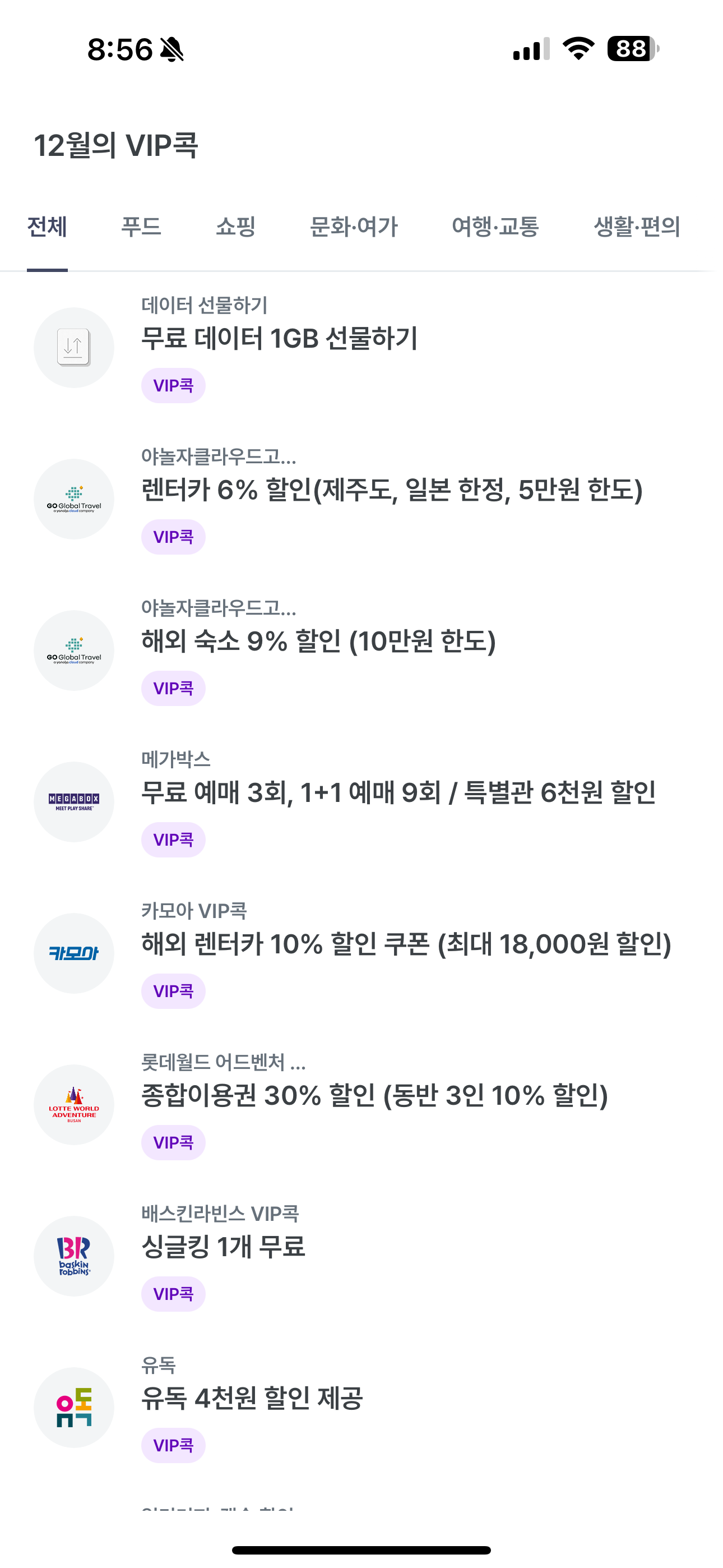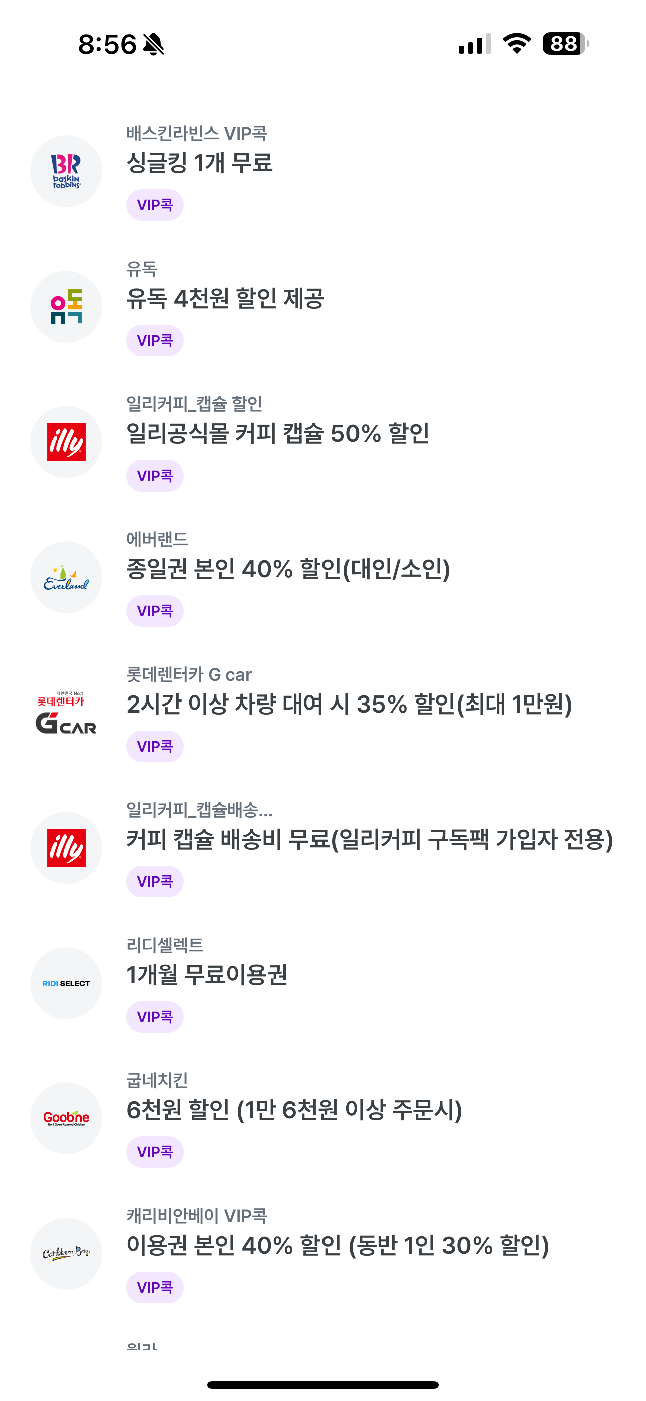 - VIP콕 혜택은 월 1회만 사용 가능하며, 선택 후 30일 이내에는 다른 혜택으로 변경할 수 없습니다. 따라서 신중하게 선택하시기 바랍니다.