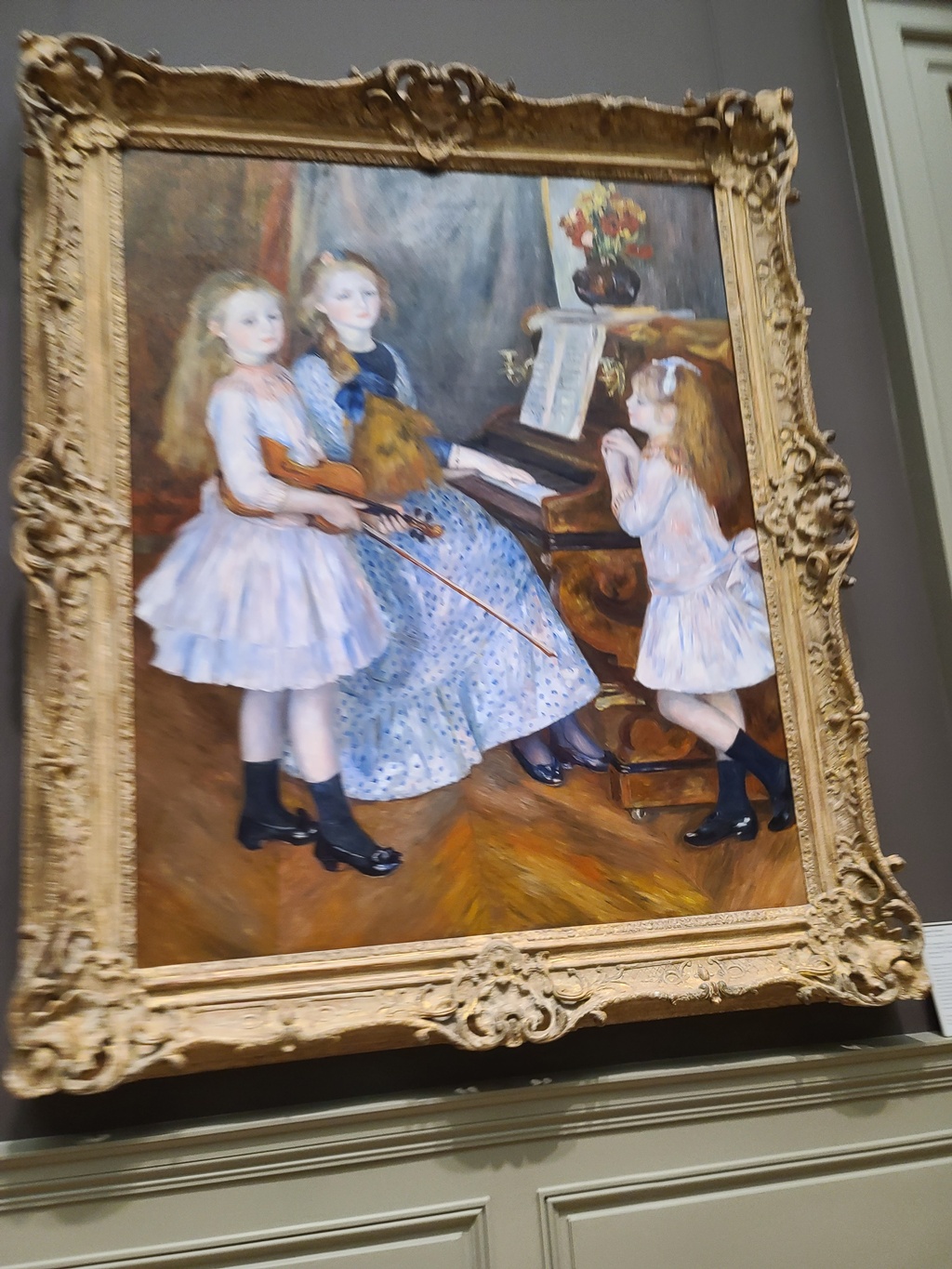 프랑스 인상주의 화가의 피에르 오귀스트 르누아르 (Pierre-Auguste Renoir)의 피아노 앞의 소녀들 (Young Girls at the Piano) 입니다. 이 작품은 따뜻하고 부드러운 색채와 가족적인 분위기를 담고 있는 르누아르의 대표적인 작품 중 하나입니다.