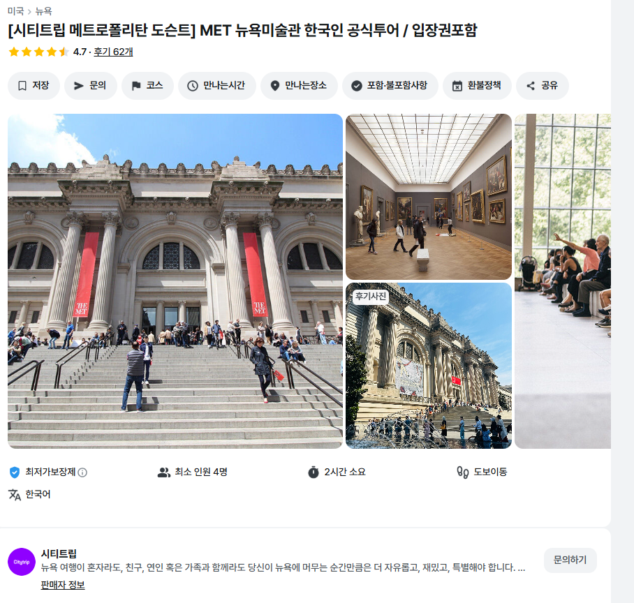 메트로폴리탄 미술관은 방대한 컬렉션과 넓은 공간 때문에 처음 방문하는 사람들에게는 다소 막막할 수 있습니다. 그래서 저는 한국인 전문가이드 투어를 추천드립니다.