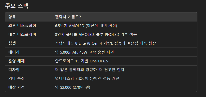 삼성 플래그십 스마트폰 갤럭시 Z 폴드7, 삼성 트리폴드 출시 루머 스펙 가격대