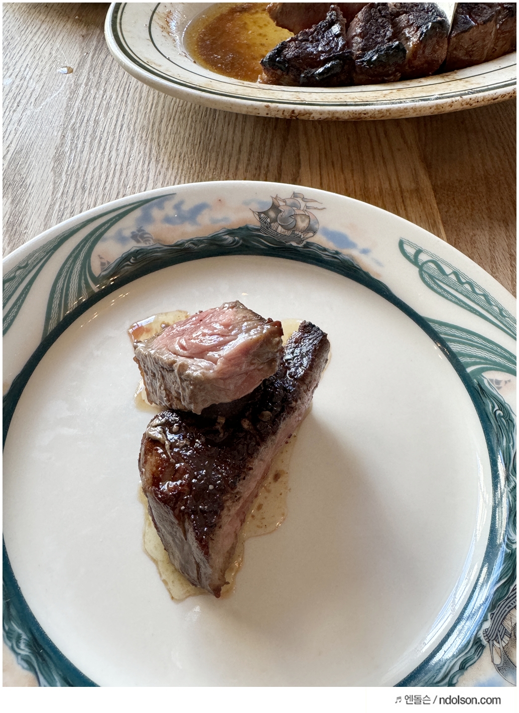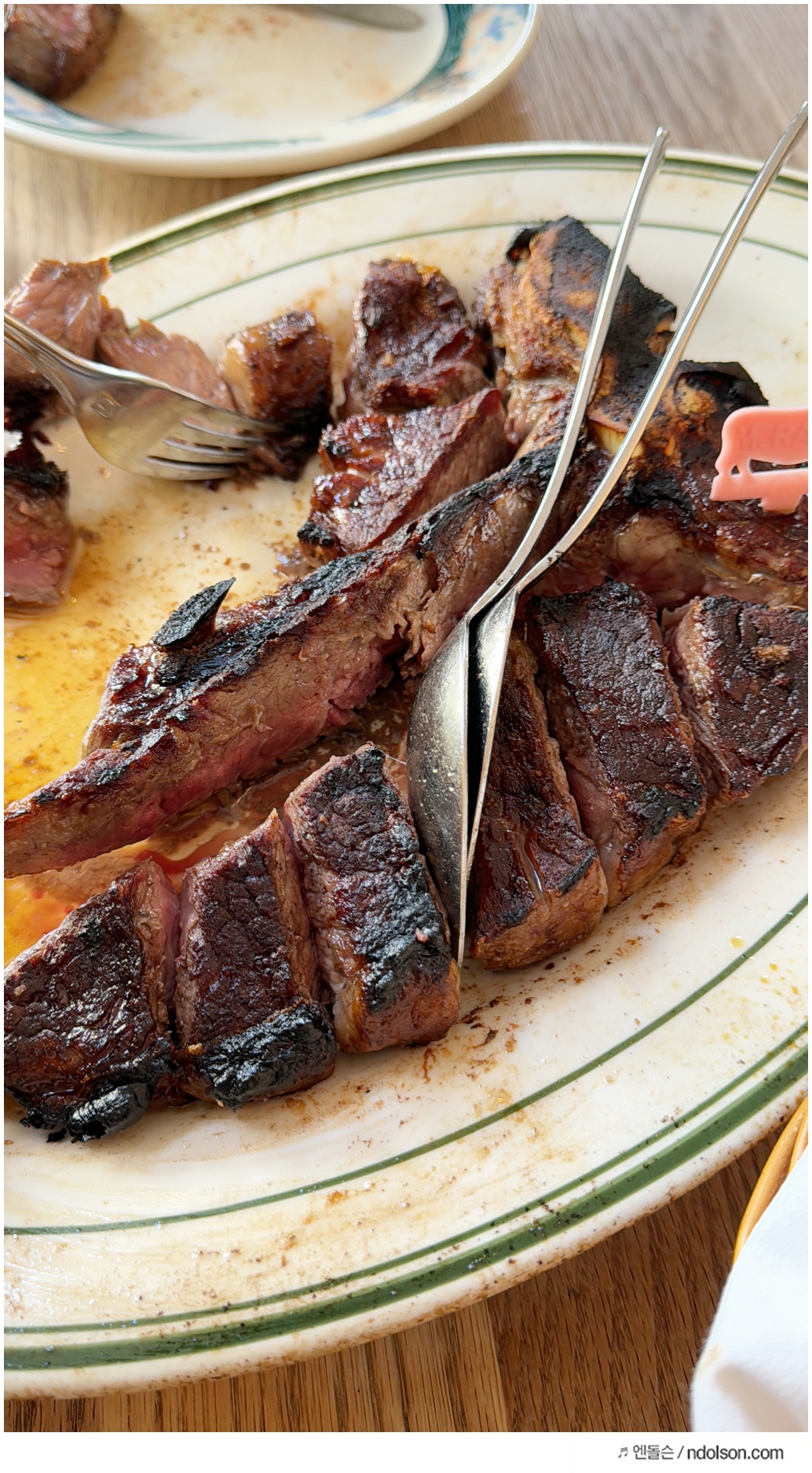 맛있는 스테이크를 즐기며, 오즈모 포켓 3로 음식을 촬영했습니다. 스테이크의 육즙이 흐르는 모습과 함께, 우리가족의 즐거운 순간을 생생하게 담을 수 있었습니다.