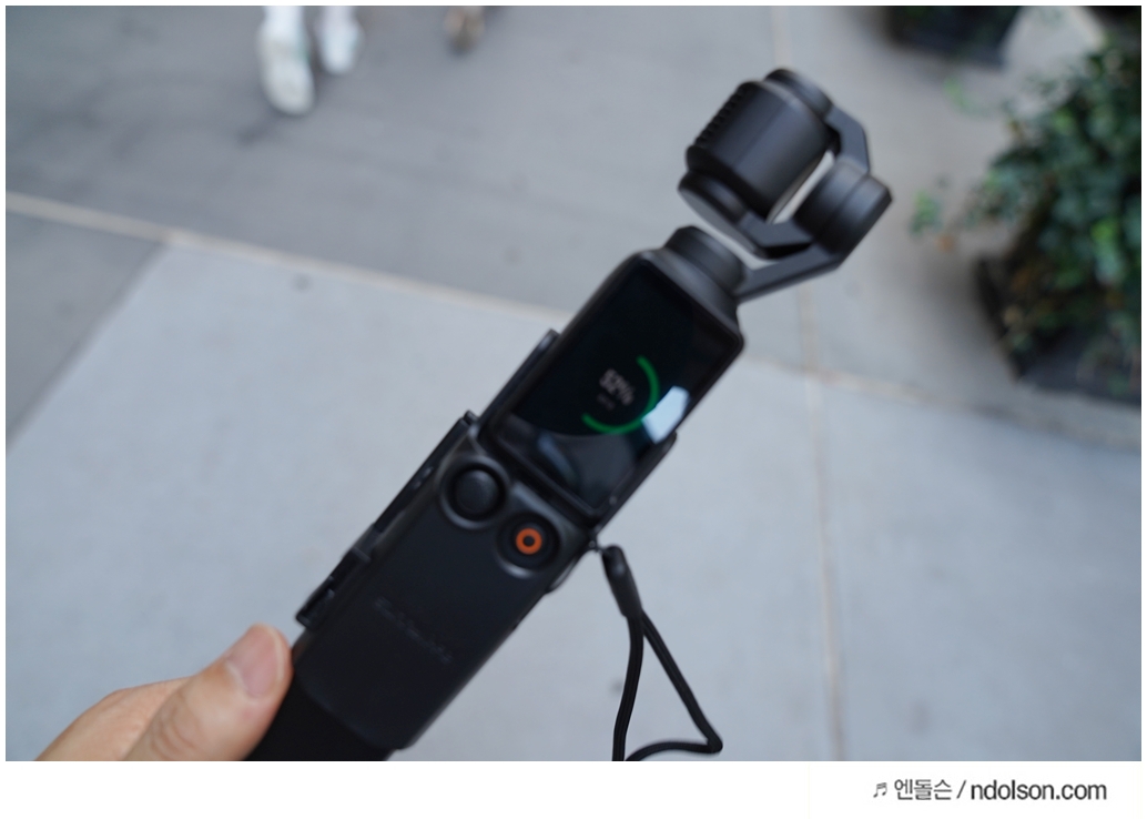 배터리는 약 2시간 동안 충분히 버텨주었고, 보조배터리를 연결해 촬영을 이어나갈 수 있었습니다. 오즈모 포켓3 전용 배터리는 아니지만, 호환 배터리로 길쭉하지만 배터리가 적을 때 유용하게 사용하였습니다.