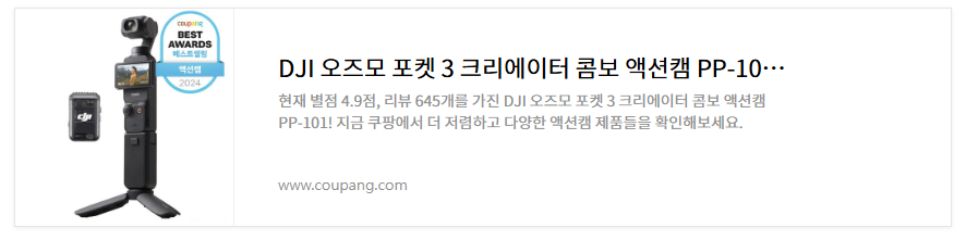 <쿠팡 로켓배송> 오즈모 포켓3 크리에이터 콤보 액션캠 구매하기