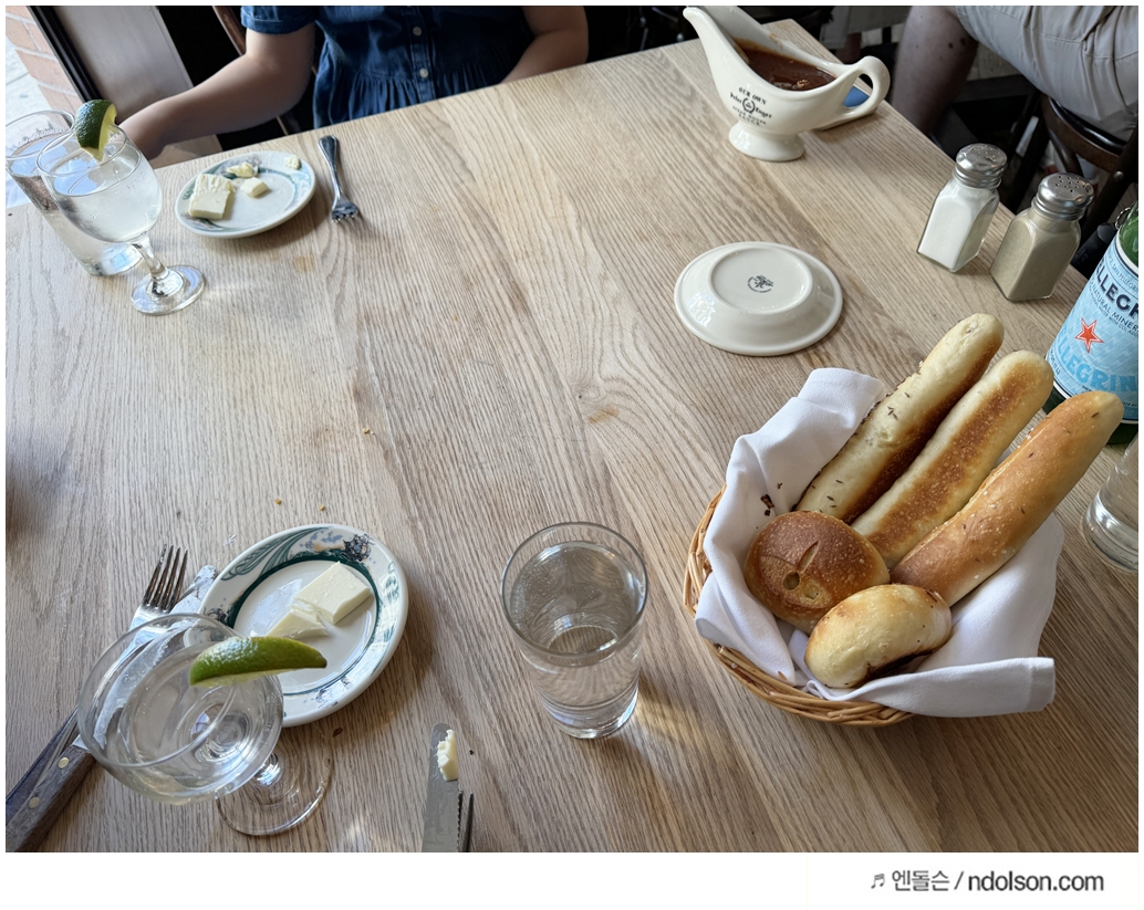 여행 중 유명한 맛집 피터 루거 스테이크 하우스에서 촬영한 영상은 선명하고 안정적이었습니다. 인종차별 같은 불쾌한 경험 없이, 창가 자리에서 멋진 풍경과 요리를 담을 수 있었습니다.
