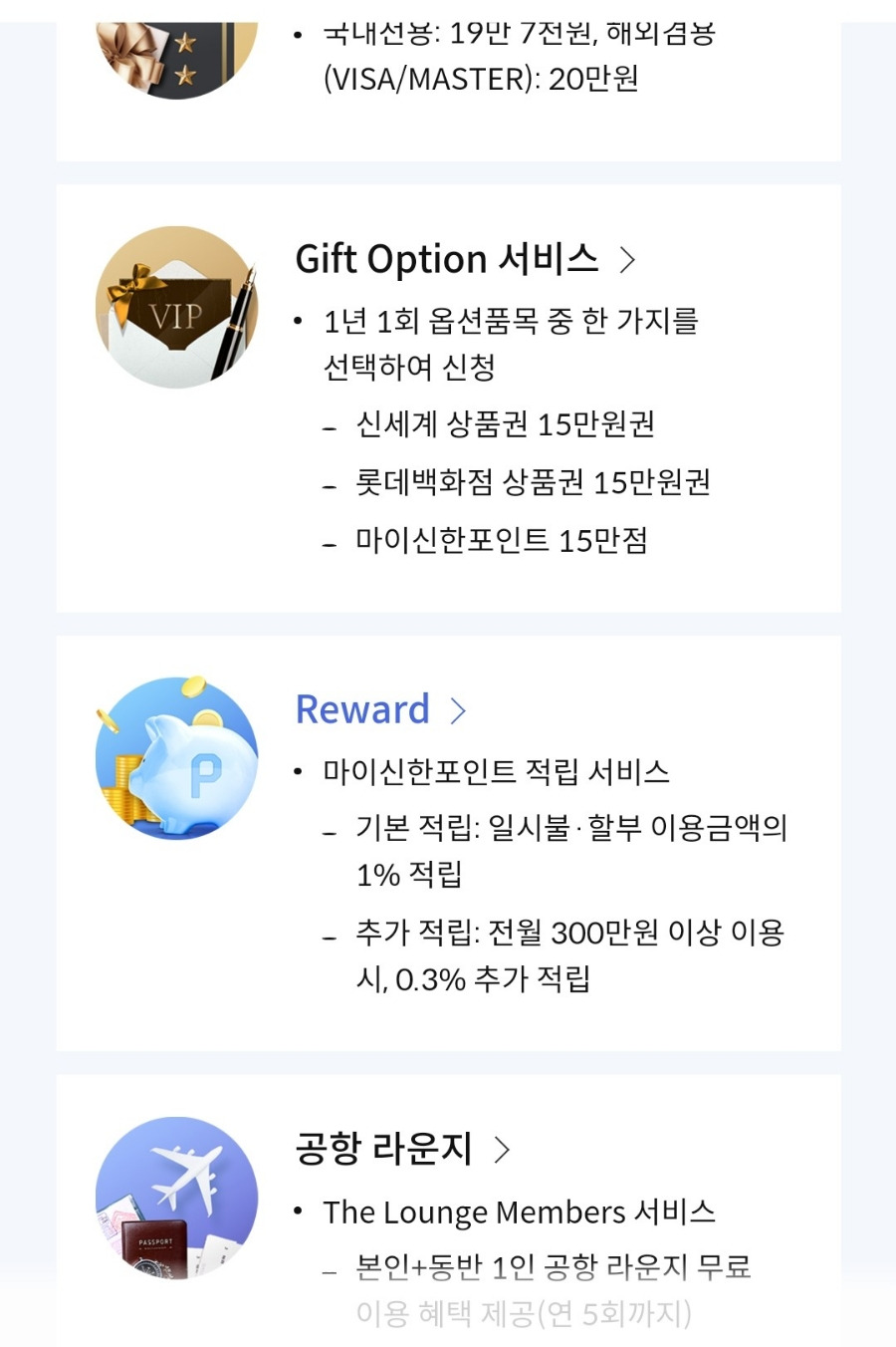 - 동반 이용 필요 시: 동반 입장이 가능한 신한 클래식 V 카드나 제이드 카드를 고려해보세요. 특히 가족과 함께 여행하시는 분들께 유용합니다.