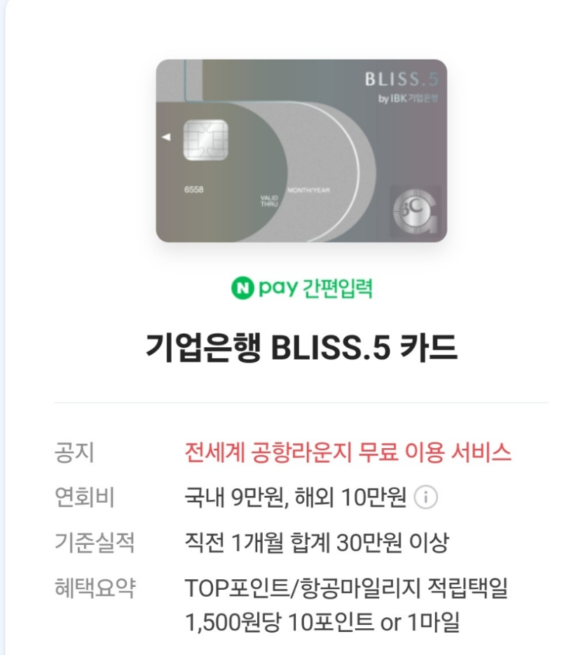 에어프랑스 라운지를 이용하려면 PP 카드가 필요했는데, 이를 위해 기업 블리스 5 카드를 발급받았습니다. 이 카드는 초년도에 무실적 조건으로 PP 카드를 통해 연 3회 라운지 입장이 가능하다는 장점이 있습니다. PP 카드 외에도 라운지 앱을 통해 입장이 가능해 편리하게 이용할 수 있었습니다. 단, 본인만 이용 가능하다는 점은 아쉬웠습니다.