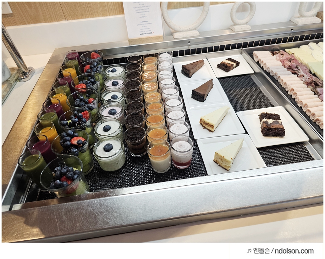 에어프랑스 라운지에 처음 입장했을 때 문이 닫혀 있어 당황했지만, 운영 중이었습니다. 평일 낮이라 그런지 이용객이 적어 조용한 환경에서 여유로운 시간을 보낼 수 있었습니다.