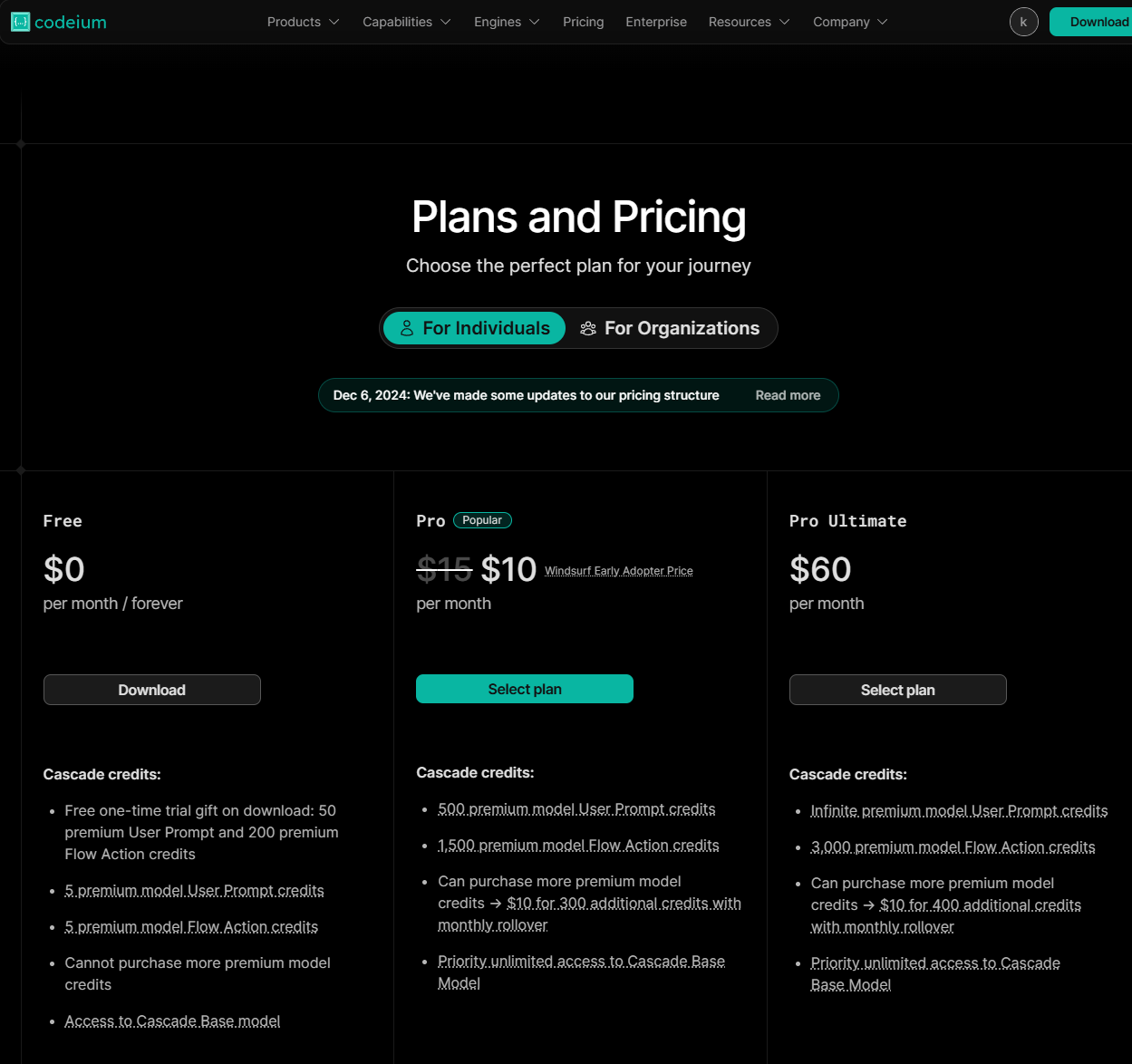 Windsurf Editor는 크레딧 기반의 독창적인 요금제를 통해 다양한 사용자에게 맞춤형 솔루션을 제공합니다. 팀 단위로 무료로 시작해보고, 필요에 따라 플랜과 리소스를 조정해보세요. 더 큰 프로젝트를 준비 중이라면 유료 플랜 업그레이드나 Flex Credits 구매를 고려할 수도 있습니다.