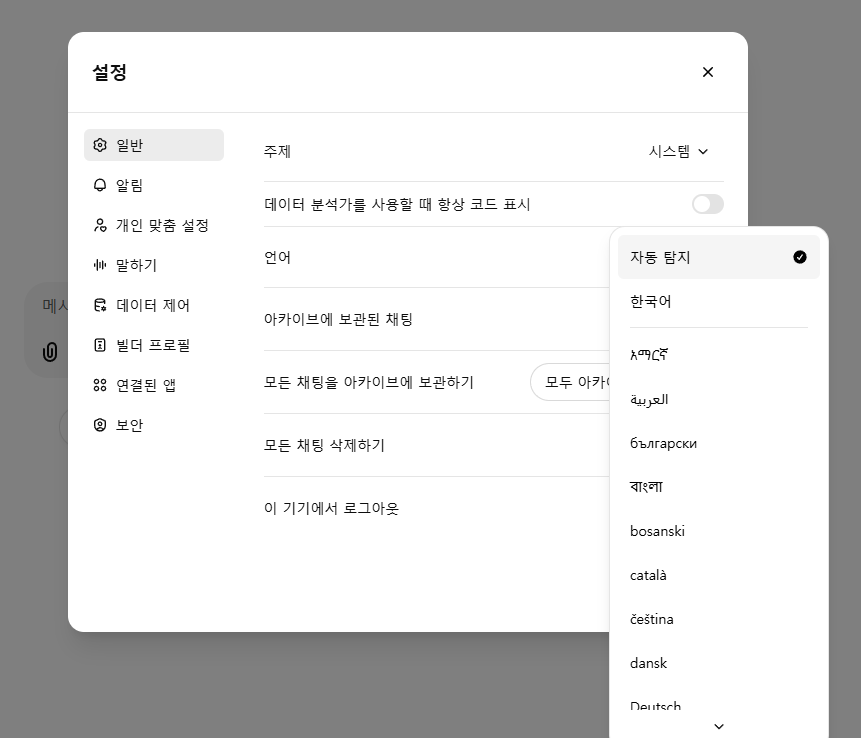 챗GPT 한글로 설정하기