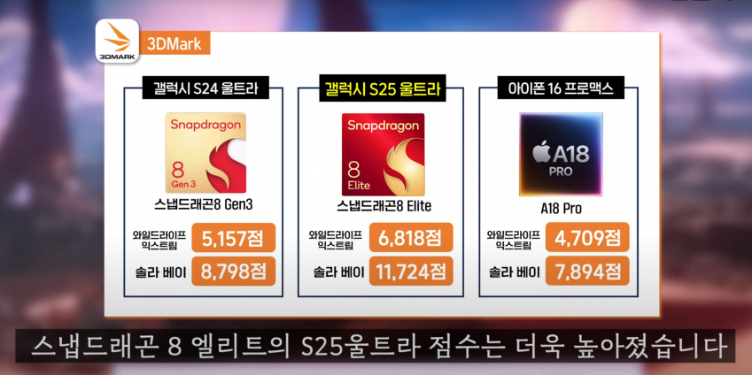 갤럭시 S25 시리즈는 퀄컴의 최신 칩셋인 '갤럭시용 스냅드래곤 8 엘리트'를 탑재했습니다.
