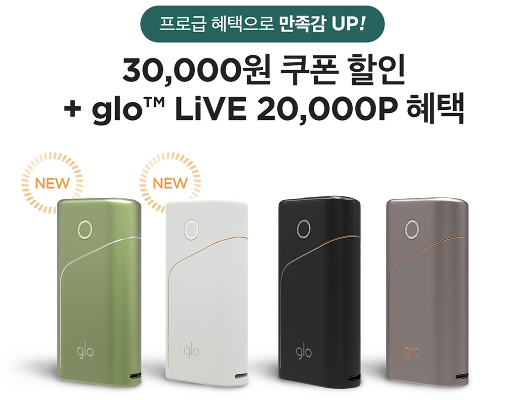 글로 프로를 구매할 때 그냥 사면 안되요. 30,000원 쿠폰할인과 Glo Live 2만 포인트도 혜택 받고 구매하세요! 그럼 저렴하고 합리적으로 글로 프로를 구매하실 수 있어요!
