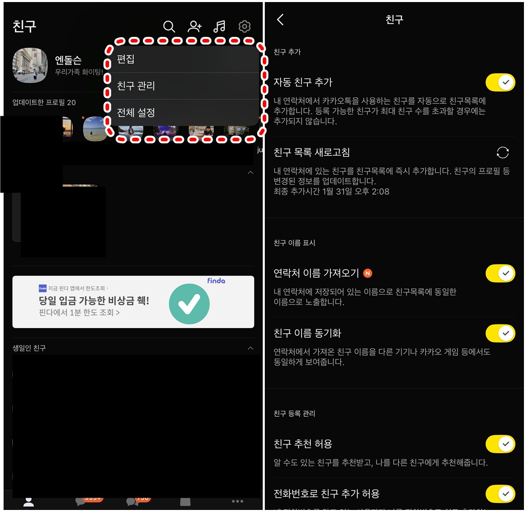 카카오톡 친구 관리 방법 비교