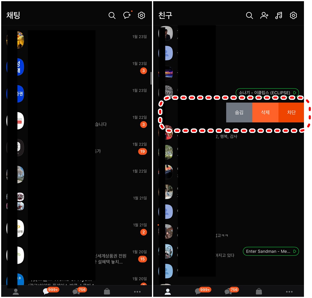 카카오톡 차단 친구 삭제 후 관리 방법