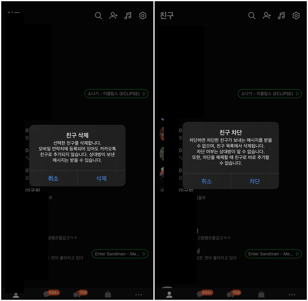 카카오톡 차단 친구 삭제 시 주의사항