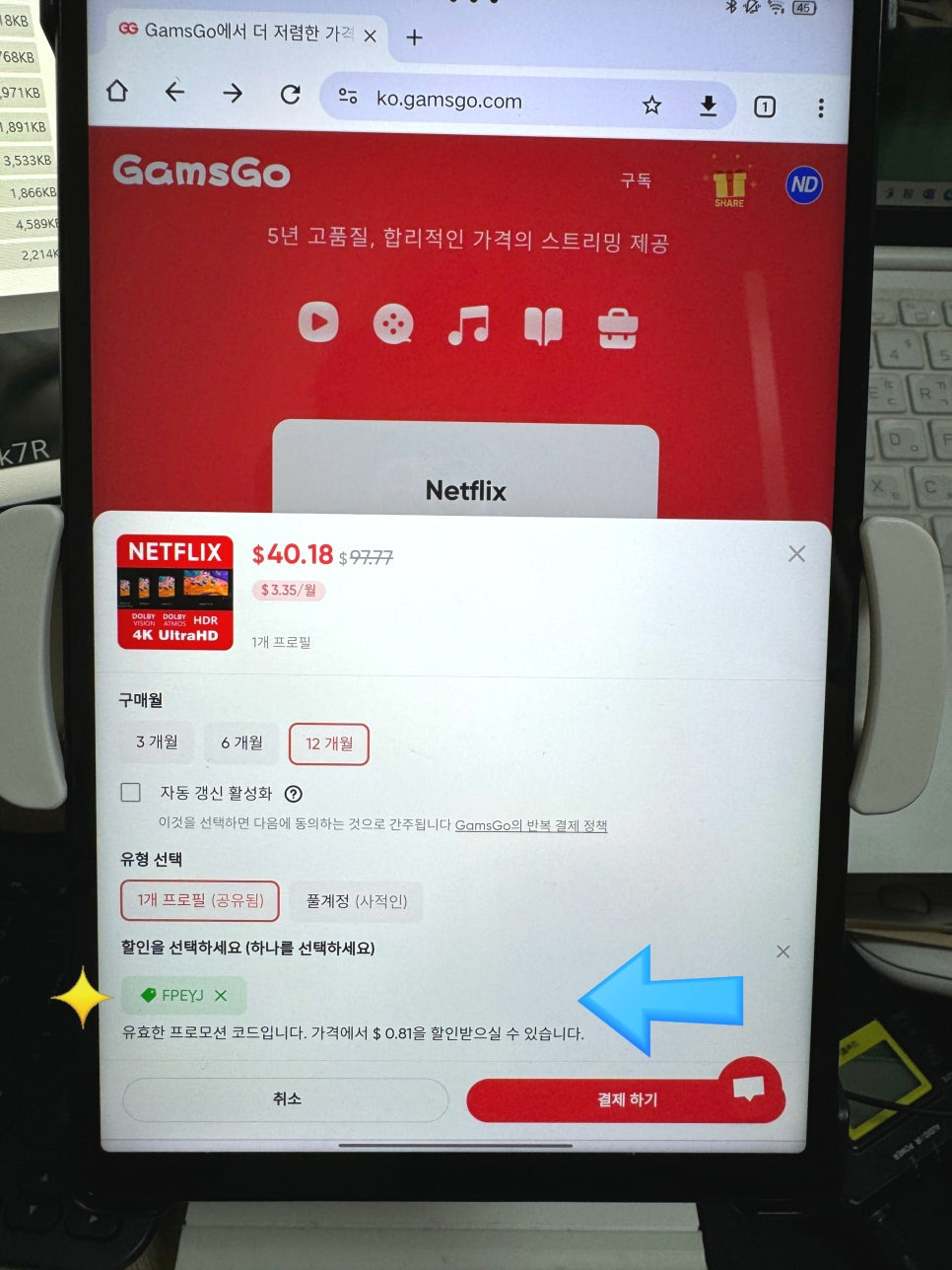 GamsGo 가입 → 스포티파이 선택 → 12개월 구독 선택