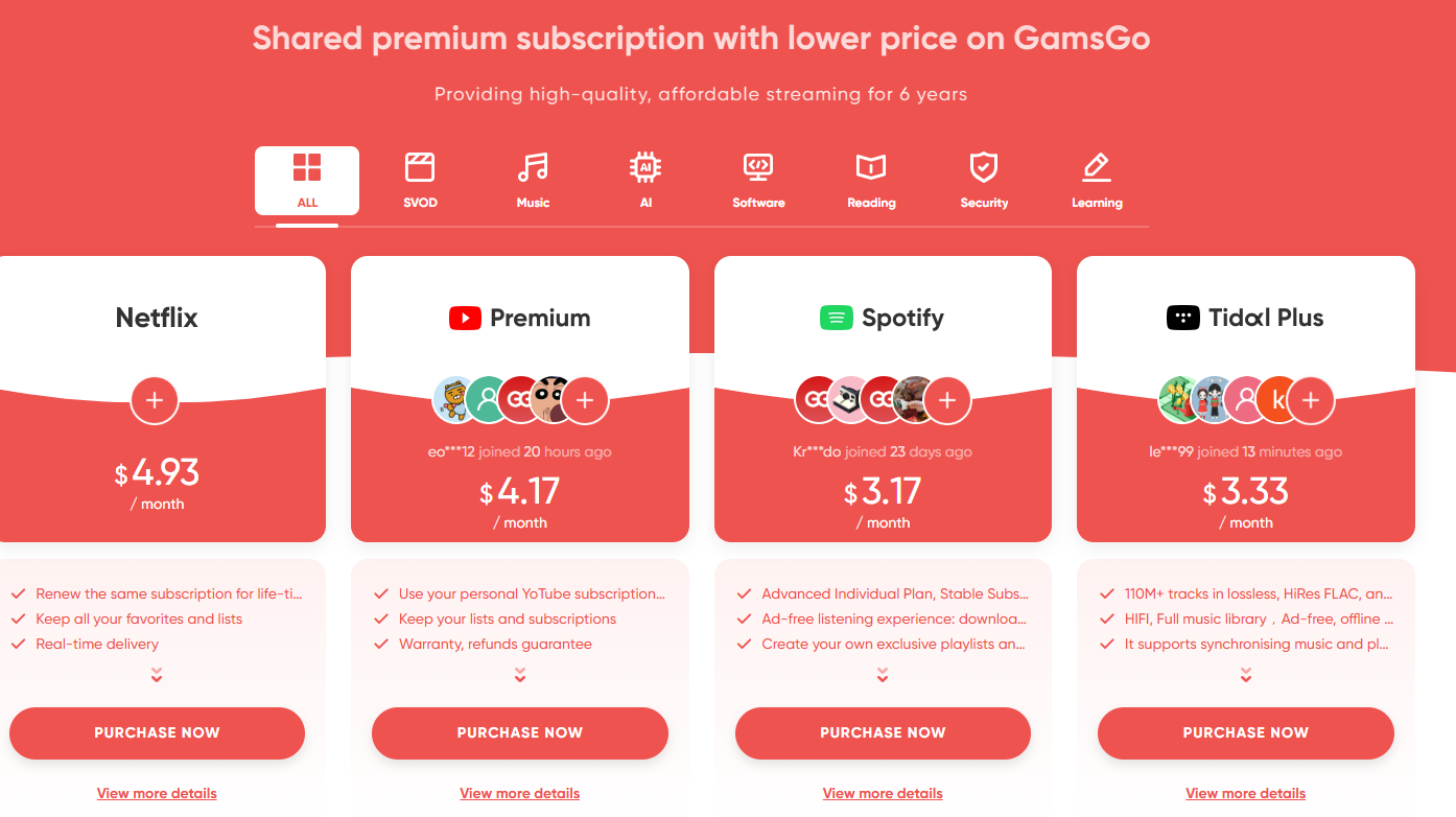 Shared premium subscriptions with lower price on GamsGo! | Netflix | YouTube Premium - GamsGo