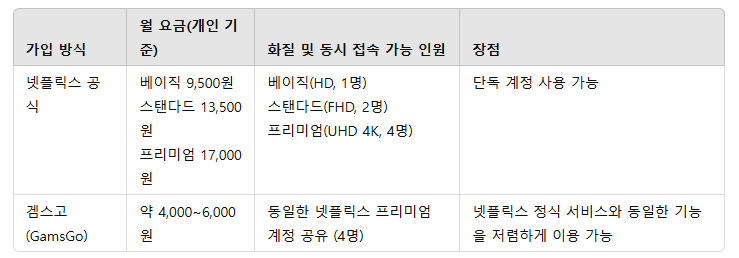 넷플릭스 요금 비교: 공식 vs. 겜스고