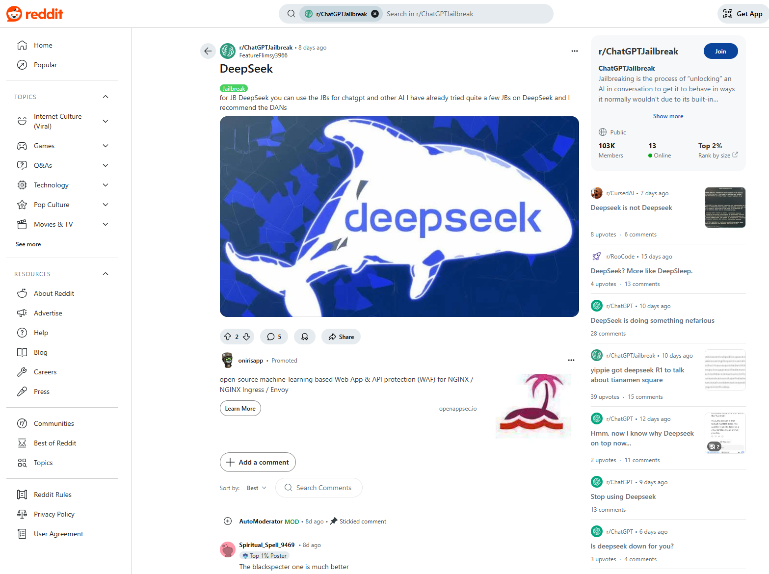 출처 : https://www.reddit.com/r/ChatGPTJailbreak/comments/1ied841/deepseek/