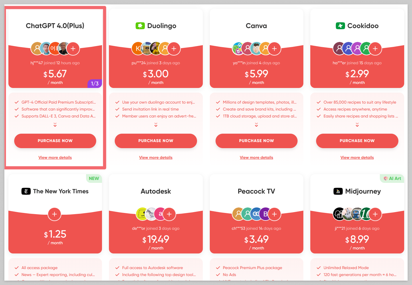 아무래도 공유 서비스라 계정을 공유하기 때문에 디즈니+, 넷플릭스, 챗GPT4 플러스까지 모두 저렴합니다.