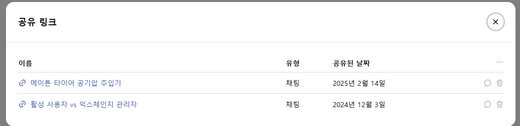 - 공유 링크 열람: 공유받은 사람(예: 사용자 B)은 원 대화 내용을 그대로 확인할 수 있음.