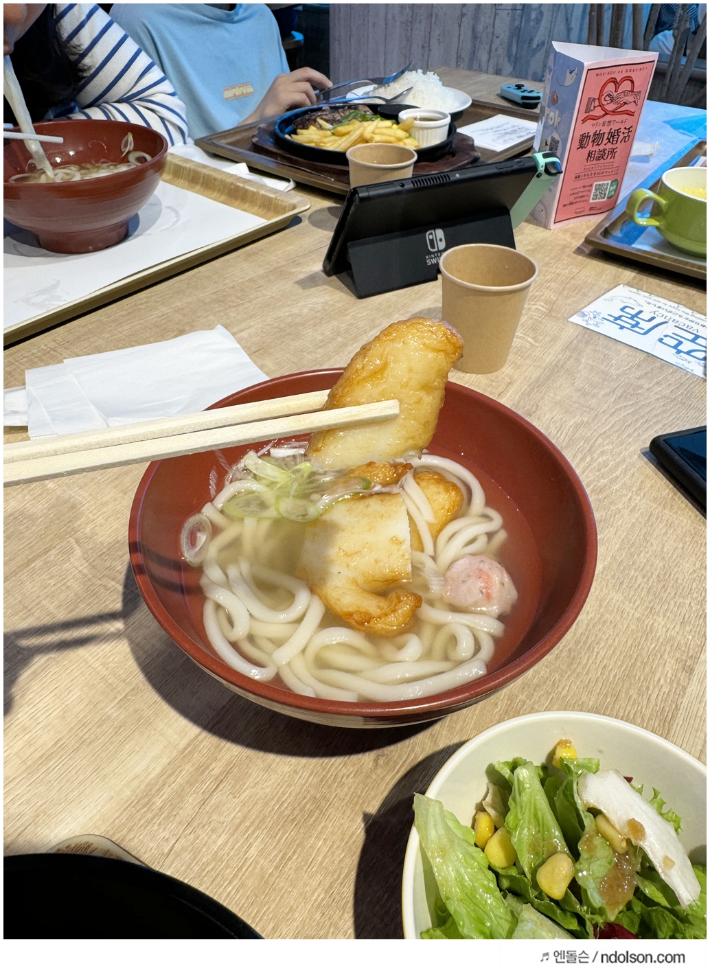 와이프는 고기들어간 덮밥 같은걸 시켜서 우동이랑 같이 먹었네요.