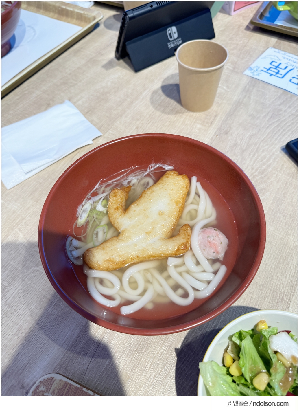 와이프는 고기들어간 덮밥 같은걸 시켜서 우동이랑 같이 먹었네요.