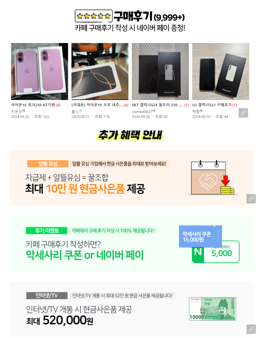 - 추가 혜택: 카페 구매 후기 작성 시 네이버 페이, 악세서리 쿠폰 등 다양한 사은품을 제공