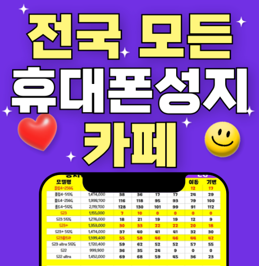 최신폰 구매할 때, 시세표를 보고 성지카페에서 구매하면 저렴하긴 합니다. 그래서 여러 곳을 비교해본 결과, ‘성지카페 국대폰’이라는 온라인 카페를 통해 구매하면 최저가 105만 원 현금가로 저렴하게 구입할 수 있다는 소식을 접했습니다.