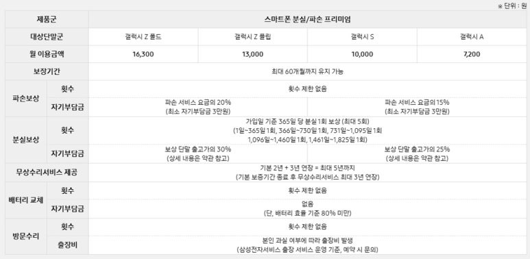 3. 삼성 분실/파손 보상 서비스 상품 안내