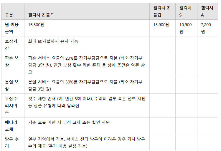 - 파손 보장 서비스: 삼성 분실/파손 보상 상품과 연계되어, 파손·수리에 대한 경제적 부담 감소