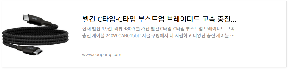 쿠팡 로켓배송 벨킨 CtoC 아이패드/아이폰 240W 고속충전 케이블 <구매하기>