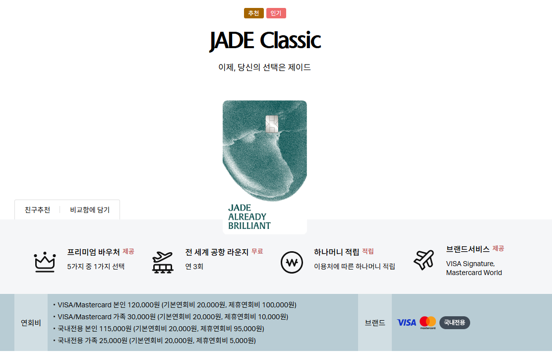 하나 제이드카드 (더라운지 앱 동반인 2명 무료)