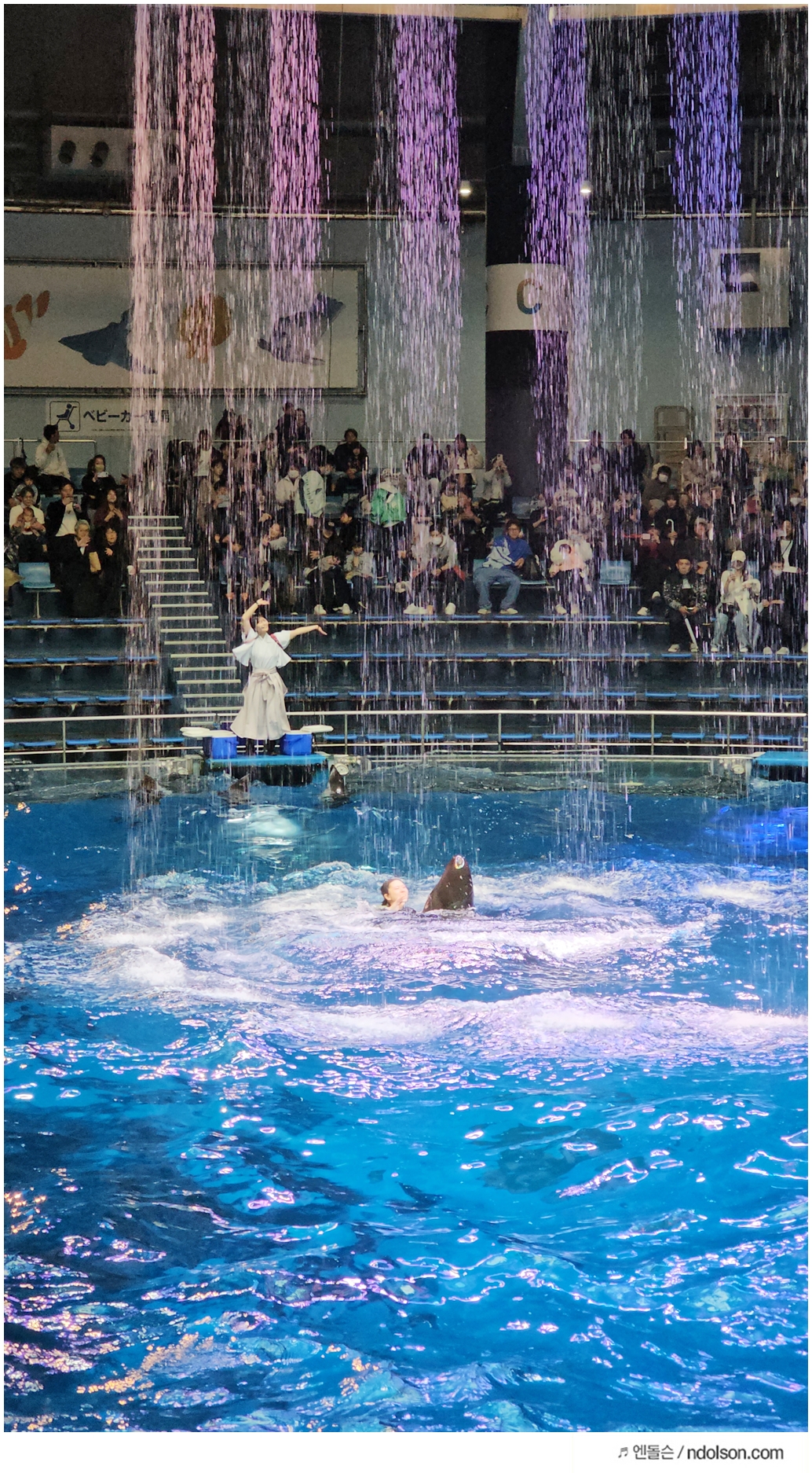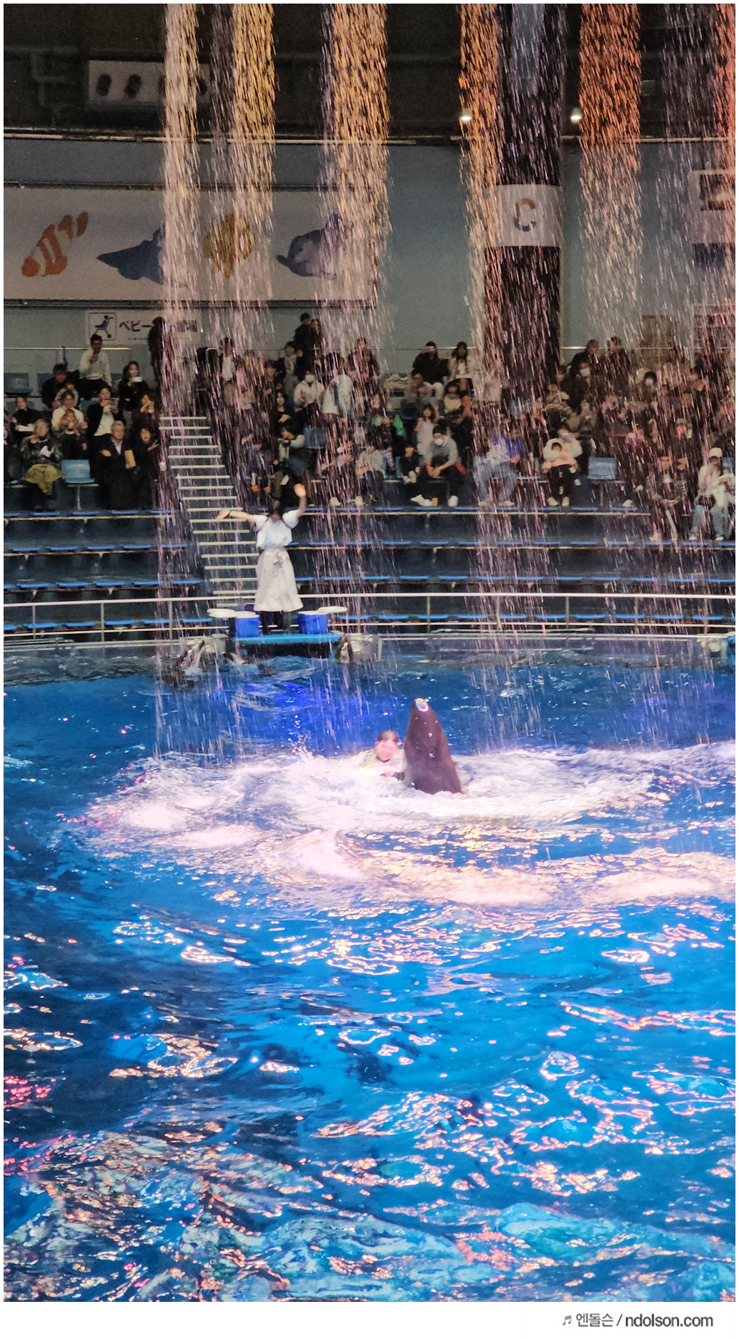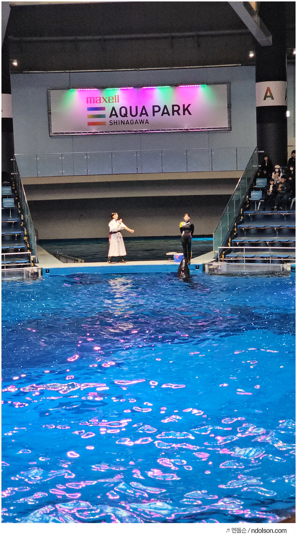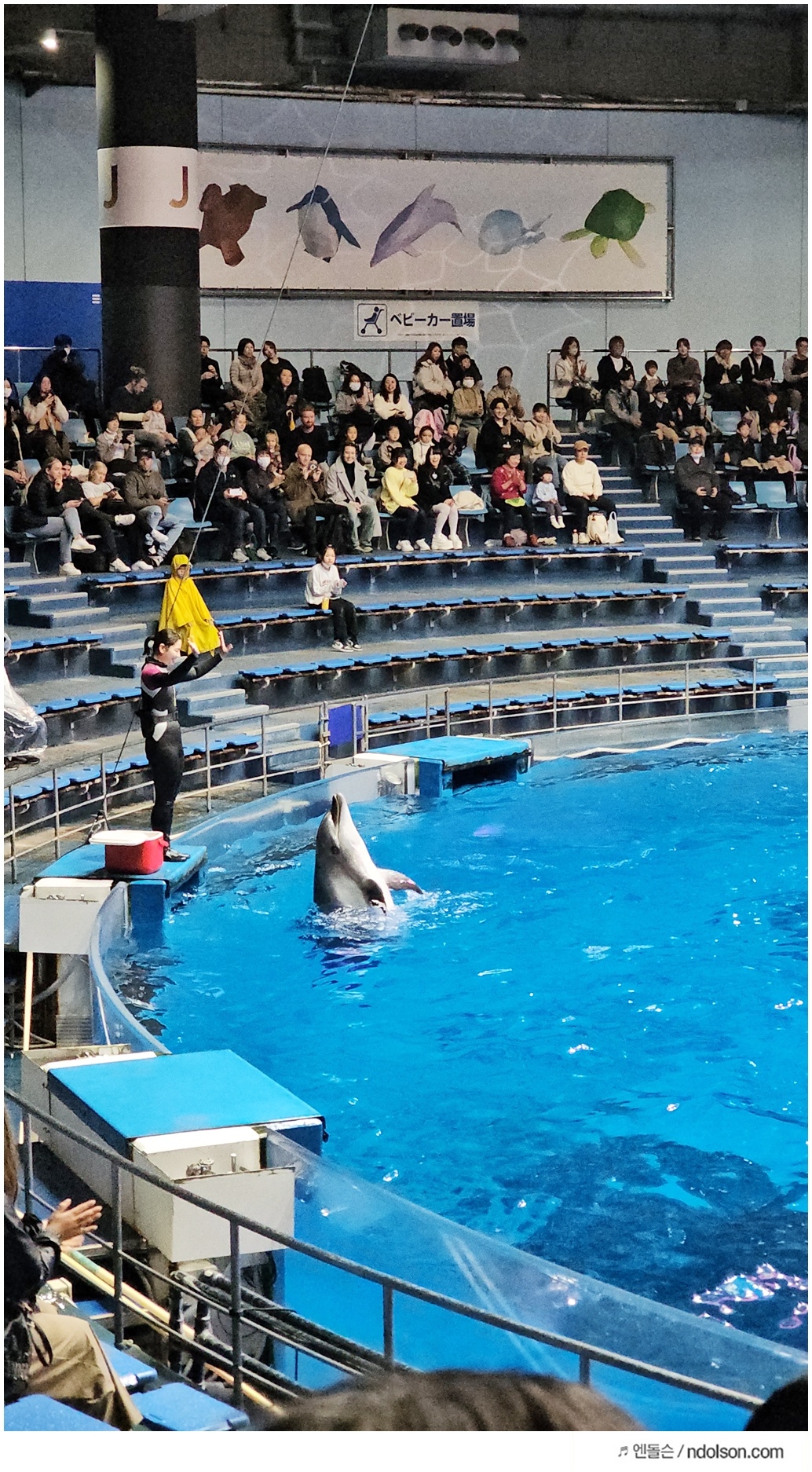 그래도 다행인게 비오는 날이였지만, 실내에서 볼 수 있는 도쿄 돌고래쇼가 있어서 너무 좋았습니다. 그래서 한번은 촬영하면서 보고 한번은 더 가까이에서 봤네요.