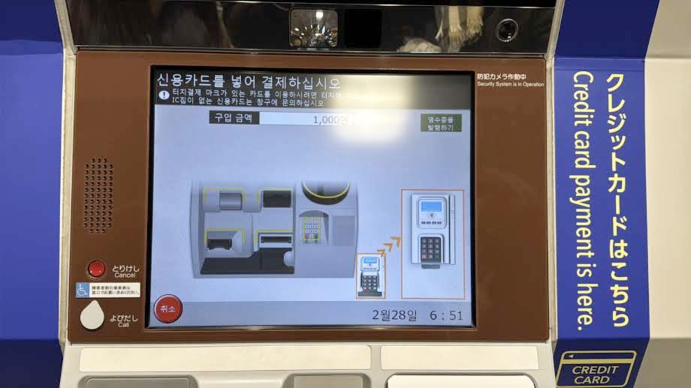 티켓 발권기에서 한국어를 지원해 간편하게 예매가 가능합니다.