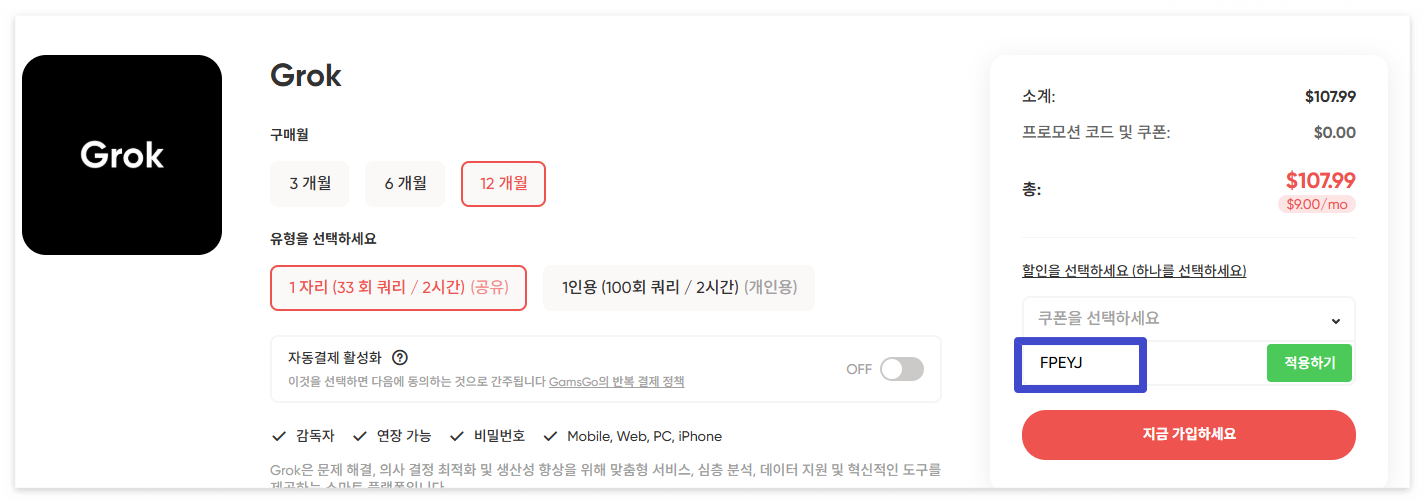 이 코드를 적용하면, 추가 할인된 가격으로 챗GPT 플러스 요금제를 구독할 수 있습니다.