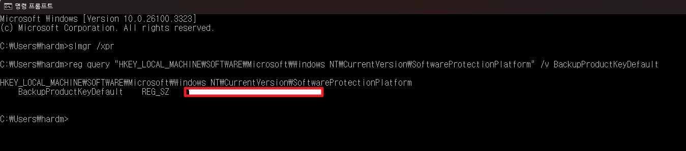 - 정품 키가 정상적으로 입력되었는지 확인한 후, 다음 명령어를 입력합니다.