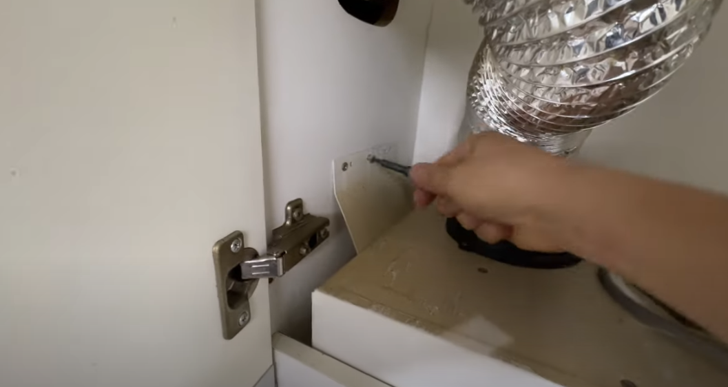 - 후드 상단의 나사를 풀어 고정된 부분을 제거합니다.